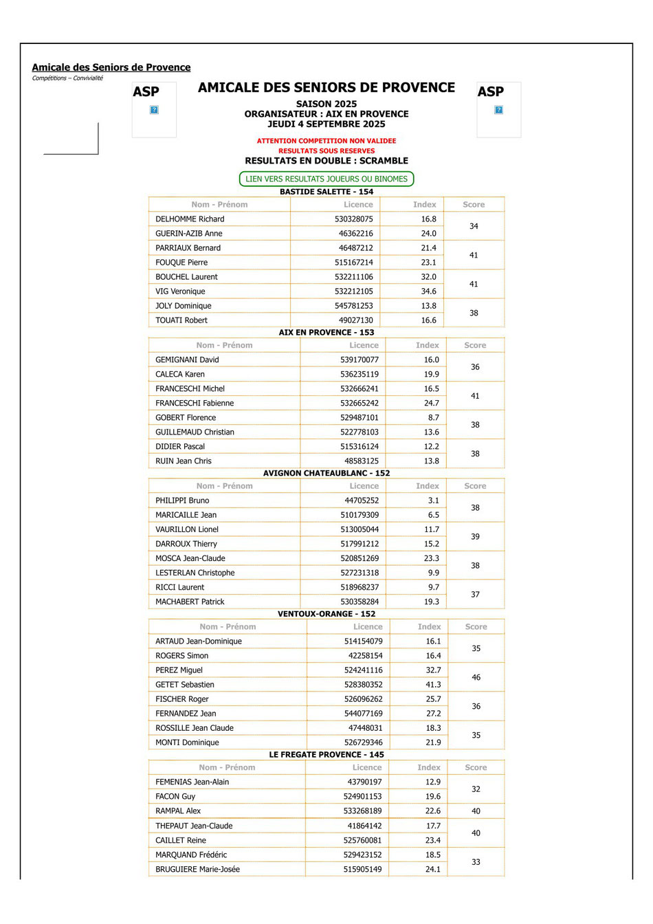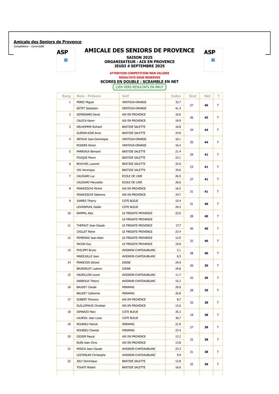 Résultats du 4 Septembre au golf d'Aix Set-Club