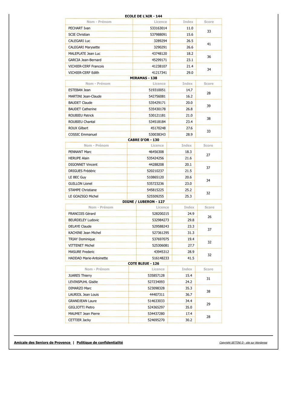 Résultats du 24 Juin au golf resort de Digne les Bains